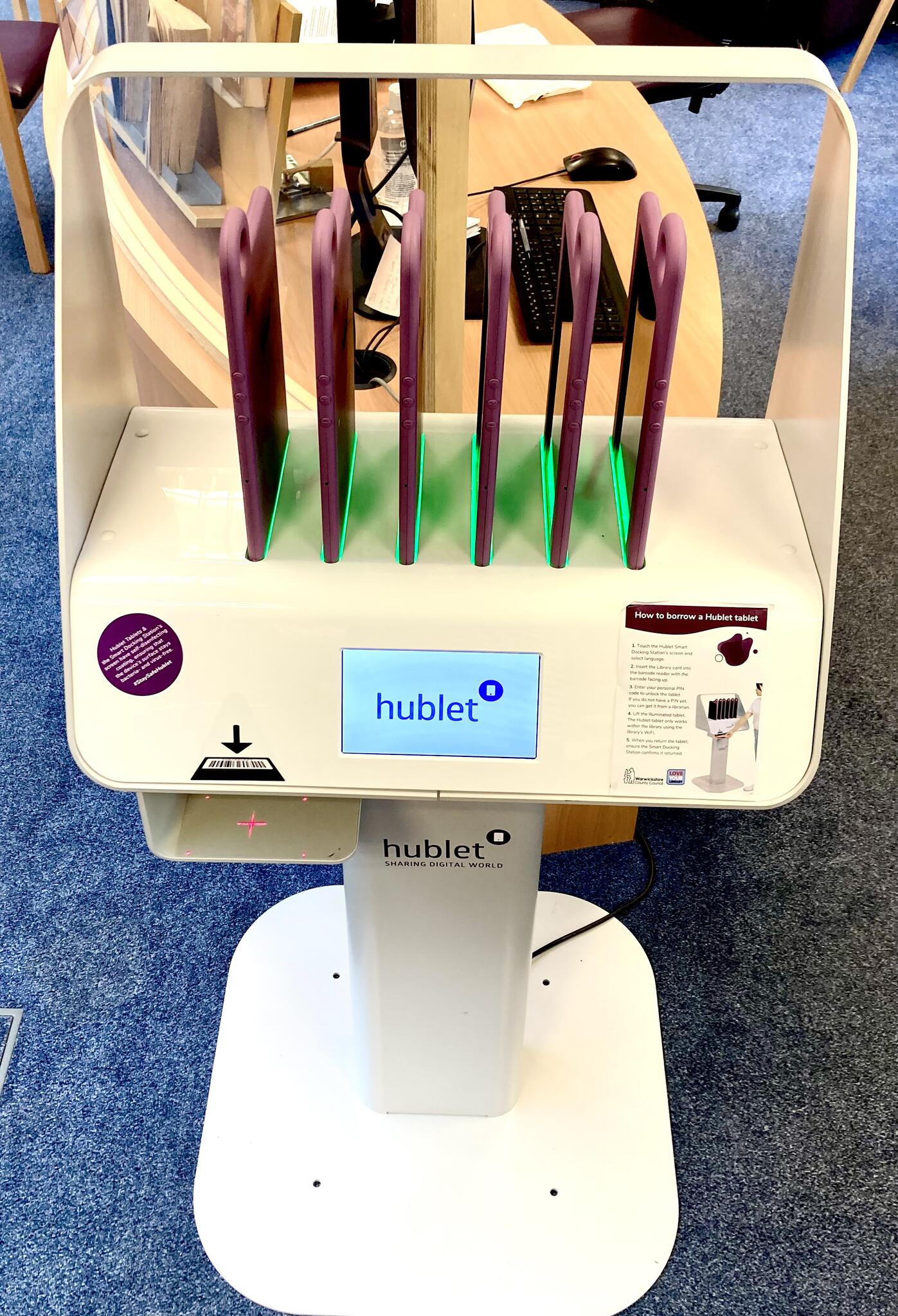 Hublets are now available to use at Leamington, Nuneaton, Rugby, Atherstone, Bedworth, Warwick, Kenilworth, Southam and Stratford libraries, and allow users to enjoy eMagazines, eNewspapers, eBooks, and other online eResources without the need to have or bring their own digital devices to the library.